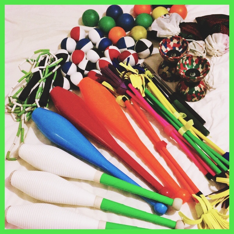 Unter fachmännischer Anleitung können die Kinder mit diesen Utensilien das Jonglieren erlernen und ausprobieren. Julian bringt sehr viel Erfahrung und Passion mit.